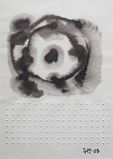 gwasz, perforacja, papier; 70 x 49 cm;