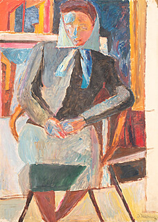 gwasz, papier naklejony na sklejkę, 20 x 27 cm w świetle oprawy