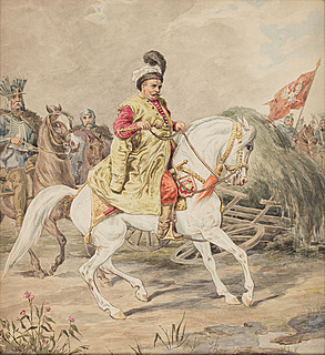 sygn. monogramem p.d.: JB, na odwrociu obrazu odręczna adnotacja ołówkiem: Józef Brodowski 2.71 / (Malował z Juliuszem Kossakiem / wspólnie) / ur. 1828 / Studia w Petersburg pod kier....