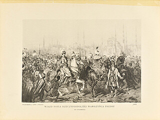 Opisany śr. d.: WJAZD POSŁA RZECZYPOSPOLITEJ WAWRZYŃCA FREDRY, l. d.: ŚWIATŁODRUK J. LOWY w WIEDNIU oraz data p. d.: 1883.