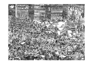 sygn.: Nie zgubię się w tłumie:supermarket 3/20 akwaforta Justyna Dziabaszewska 2015