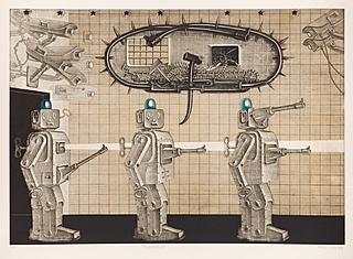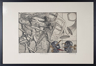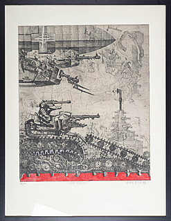 technika mieszana (mezzotinta, sucha igła), papier, kompozycja: 64,5 x 99 cm, arkusz: 79 x 107 cm, 20/100,