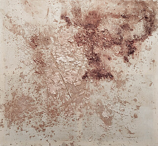 technika własna, klej, żywica, werniks/płótno, 125 x 135 cm
