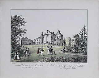 opisany u dołu: C. Auer lit. / Widok Domu we wsi Rudnikach w Cyrkule Przemyslskim / Ansicht des Schlofses im Dorfe Rudniki im Przemysler Kreise / u Pillera we Lwowie