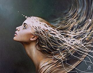 sygnowany p.d.: 'BK | BAK' oraz opisany na odwrocie: '"UMBRA LUCIS" 2022'