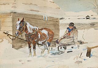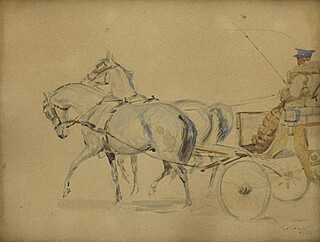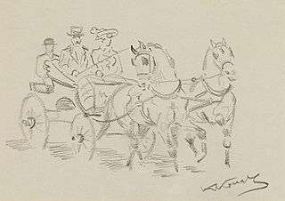na odwrocie wykonane ołówkiem szkice koni i szkic postaci
