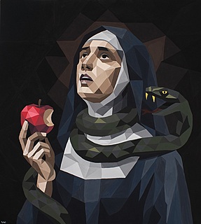 Praca inspirowana fotografią Albiny Didovich o tytule "ARIES z serii Latex Zodiac Series".