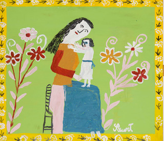 na odwrociu p.g. odręczny napis: 'Maria und Jesus in den Blumen | 64 x 73,6; na odwrociu cztery papierowe nalepki: nalepka galeryjna Sammlung Zander w Berlinie...