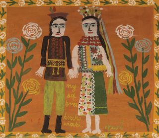 na odwrociu p.g. odręczny napis: 'Hochzeitspaar II | 54,8 x 68,2 cm' oraz nalepki: po lewej u góry nalepka z numerem '665'; pośrodku u góry nalepka...