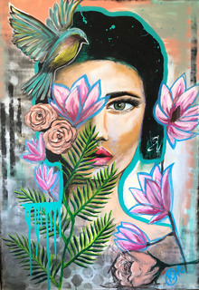 Artystka pochodzi z Warszawy. Z rysunkiem oraz malarstwem związana od najmłodszych lat. Tworzy głównie akrylami na płótnie, ale maluje również na starych gazetach i nutach. Czasem sięga do markerów i tuszu. Jej obrazy są śmiałe kolorystycznie, bardzo kobiece i emocjonalne. Mówi o sobie, że uwielbia nasycone barwy, odważne kompozycje i ludzkie oczy. Fascynują ją uczucia, które rodzą się na namalowanych twarzach podczas procesu ich tworzenia. Pozwala swoim postaciom powstawać spontanicznie. Interesuje się odmiennością kulturową oraz rasową. Lubi łączyć różne style, kształty i wzory. Inspiruje się pop-artem, graffiti oraz fotografią portretową.