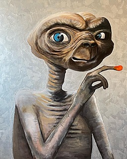 Obraz inspirowany filmem „E.T.” w reżyserii Stevena Spielberga z 1982 roku.