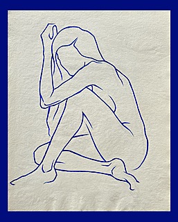 akryl, ręcznie robiony papier czerpany, 49 x 39 cm, oprawiony w niebieskie passe-partout o wymiarach: 60 x 50 cm,