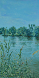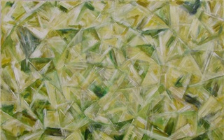 olej/płótno, 50 x 70 cm, sygnowana, datowana i opisana na odwrociu: '„W kolorach żółci i zielieni”, Kazimiera Dymek, olej, 50x70 cm, 2017'