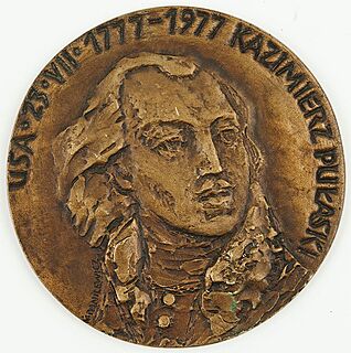 Tondo, relief, brąz, odlewany, cyzelowany; śr. 14,5 cmNapis: USA 23 VII 1777 - 1977 KAZIMIERZ PUŁASKISygnowany: K.DANILEWICZ