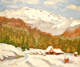 na odwrocie nalepka z danymi obrazu: autorem, tytułem: Giewont, techniką, wymiarami.