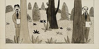 rysunek, tusz, tempera, karton, wym. 22,5x16,5 cm,