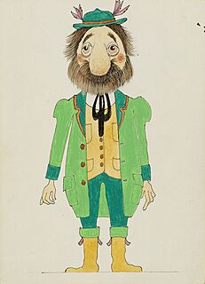 na odwrotnej stronie opis: "Kopciuszek"/Gajowy. Proj. do spektaklu "Kopciuszek", 1979, reż. T. Walczak, wg. E. Szwarc.