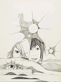 sygn. p.d, dat (19)97, na odwrocie inskrypcja: Z cyklu/ "Cień kota w tajemnicy na wzgórzu"/ papier, czarny tusz, 1997 sygn. / 32 x 24 cm / A.M.