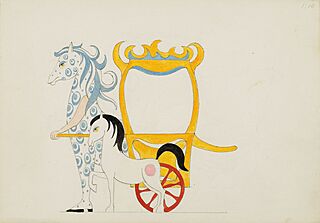 na odwrotnej stronie opis: E. Szwarc-/"Kopciuszek"-kareta i postać. Proj. do spektaklu "Kopciuszek", 1979, reż. T. Walczak, wg. E. Szwarc.