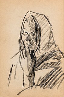 Na odwrocie szkic popiersia wiejskiej kobiety w chuście.