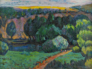 Opisany na odwrocie: 1965 / KAZ. PODSADECKI / "Nad Wisłą" / TEMPERA / 29,5 x 17,5 cm.