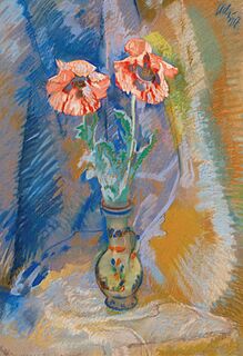 Na odwrocie napis autorski Sichulski Kraków / pastel / „Maki” / cena kor 2 tysiące / Kremerowska 8 II p; nalepka wystawowa TPSP...