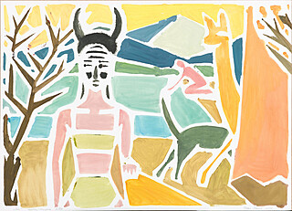 Tempera, papier, 50 x 70 cm, sygn. ołówkiem d. i na odwrocie.