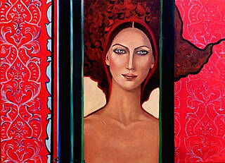 sygn. na odwrocie: 'Krystyna Ruminkiewicz | „Taka jedna w ornamencie" | 50 x 70 | olej | 2020 r.'