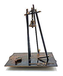 instalacja z brązu z zawieszonym dzwoneczkiem,