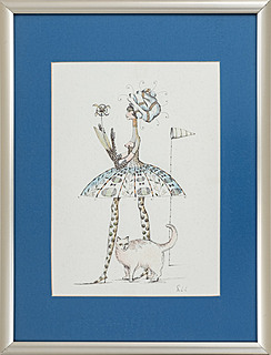 grafika podmalowana, papier, 15 x 18 cm