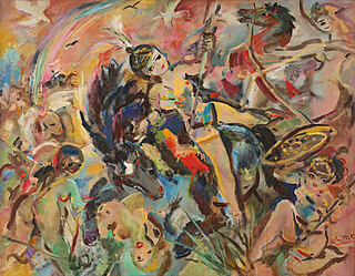 Opisany na blejtramie: "Combat des Amazones"; "L. KLIMEK"