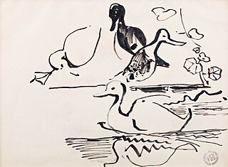 tusz, papier, 19,5 x 13 cm w świetle passe-partout