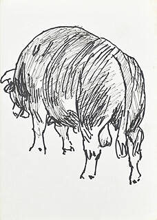 cienkopis i flamaster (tusz czarny), papier; 10,3 x 15,5 cm.