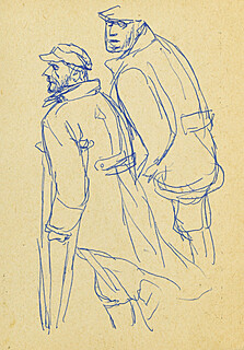 Rysunek wykonany na odwrociu zaproszenia na otwarcie wystawy "Portret / Model" z 1967 roku.
