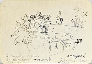 długopis, tusz, papier; 14,9 x 21 cm.