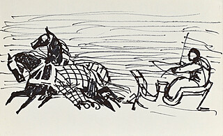 Rysunek wykonany na odwrociu zaproszenia na otwarcie wystawy Jose Guadalupe Posada i Współczesnej Sztuki Meksykańskiej z dnia 7 marca 1966 roku w Muzeum Narodowym w Warszawie.