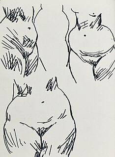 długopis, tusz czarny, papier; 10,2 x 9,7 cm.
