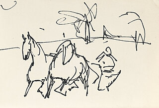 piórko, tusz, papier; 7,9 x 11,4 cm.