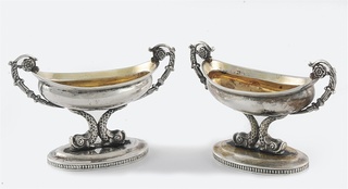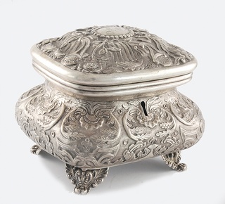 srebro próby 12 cechowane (Nast, 12); wys. 12 cm, szer. 14 cm, głęb. 12 cm; waga 637 g.