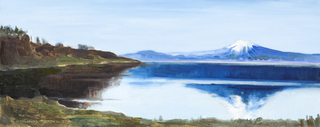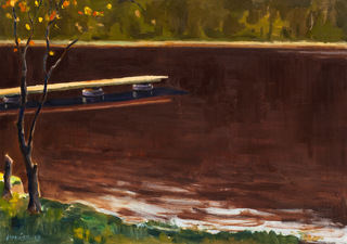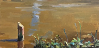 olej na płótnie, 30 x 90 cm, w oprawie (surowe, jasne drewno) - wymiary w oprawie 44 x 104 cm, sygn. pdr DYMIŃSKI'20, sygnowany i opisany i datowany na odwrocie