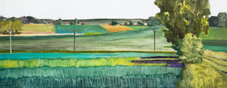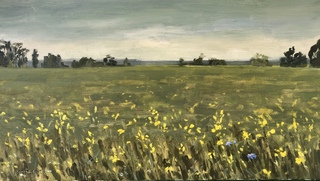 sygnowany l.d.: 'DYMIŃSKI 20' oraz opisany na odwrocie: 'Ł. DYMIŃSKI | Brzeźno "Pola" olej/płótno | 2020 r.'
