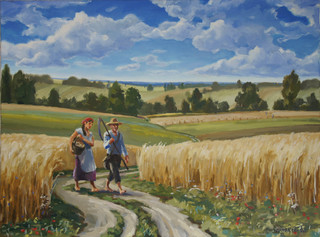 olej na płótnie, 60 x 80 cm, pdr DYMIŃSKI '20, na odwrocie "Sianokosy" "DYMIŃSKI "'20,