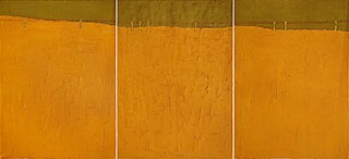 olej, płótno, całość: 219 x 100 cm (3 płótna o wymiarach: 100 x 73 cm), opisany na odwrocie: Łukasz Lepiorz "Zbyt ciasna codzienność, maj" 2008