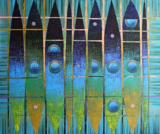 akryl, szlagaluminium na płótnie, 140 x 70 cm