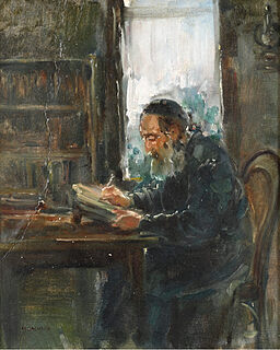 Opisany na odwrocie: "M. LACHUR | RABIN Z CYKLU GETTO (STUDIUM DO OBRAZU) | 33 x 27 cm | OLEJ PŁYTA MALARSKA | 1993"