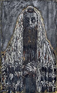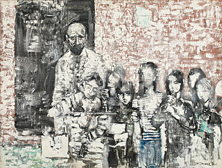 sygn. l.d.: M. LACHUR 70, na odwrocie opisany, syg. i dat.: No 8 / MACIEJ LACHUR /" CHŁOPIEC / DZIEWCZYNA" / Z CYKLU 'GETTO' / 91 x 6,5 / cm / OLEJ /PŁÓTNO / 1970
