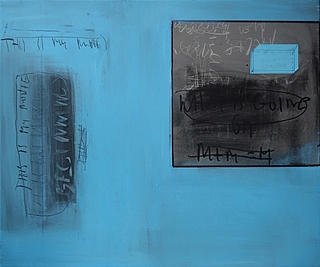 technika mieszana (akryl, marker, kolaż), płótno, 80 x 110 cm,