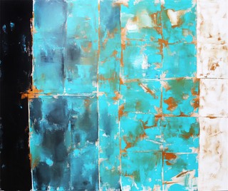 farba olejna, farba akrylowa, tusz, metalowa płyta, 100 x 68 cm