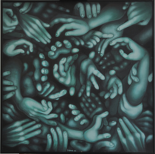 technika mieszana (akryl i aerograf), płyta HDF, 70 x 70 cm,
