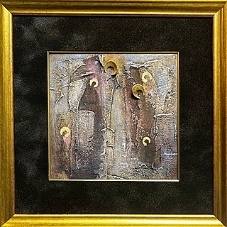 Technika własna, płótno, 20 x 20 cm, w oprawie 41,5 x 41,5 cm